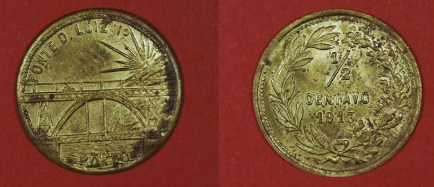 | Havia uma Ficha 1/2 centavo (1913). Para pagamento da portagem na Ponte Luiz I. |