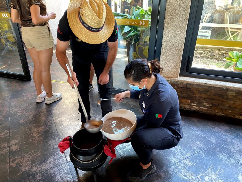 Refeição confecionada em potes de ferro e à boa maneira dos antigos costumes e tradições da arte de bem cozinhar, sempre acompanhados de histórias e música.